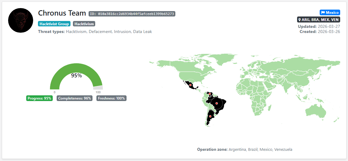 Ese patrón importa porque permite extraer una conclusión analítica razonable: Chronus Team es, con alto grado de probabilidad, un actor de origen o base operativa mexicana, aunque esto no haya sido afirmado formalmente por el propio grupo. La densidad de casos en México, la continuidad temporal de las operaciones y el tipo de blancos observados refuerzan esa hipótesis.