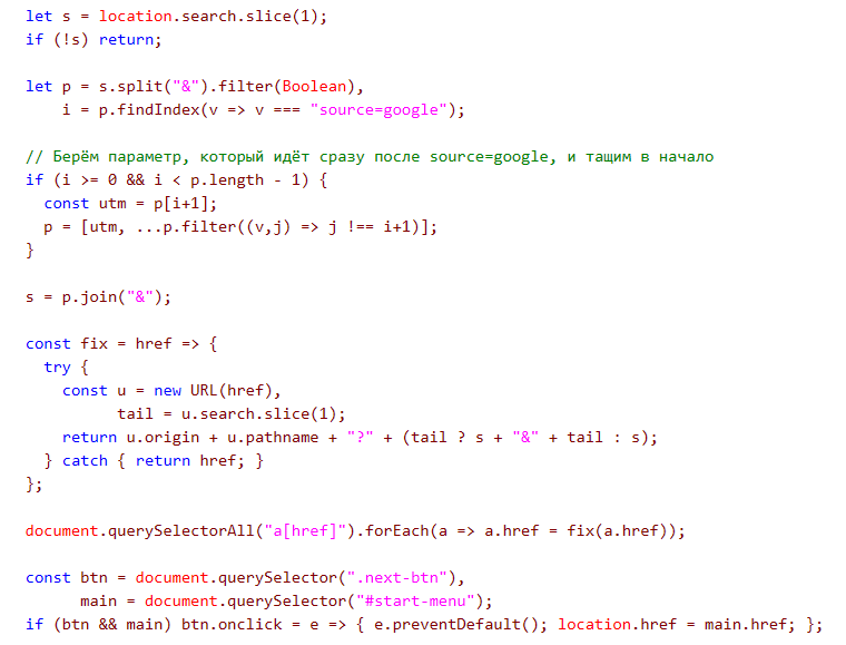 Ese comportamiento es típico de una bridge page o prelander. Su rol no es persuadir con contenido, sino asegurar que el clic siga siendo monetizable mientras el usuario avanza por el funnel. La presencia de comentarios en ruso y de referencias compatibles con un workflow estilo Keitaro sugiere reutilización de plantillas o tooling vinculado a un ecosistema de afiliación o tracking de campañas, aunque no alcanza para sostener una atribución directa.